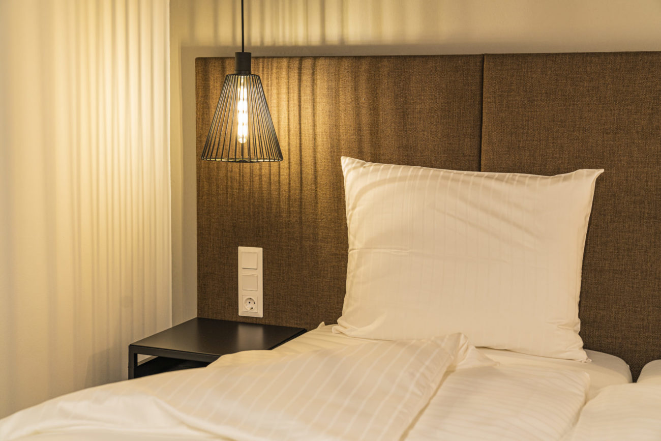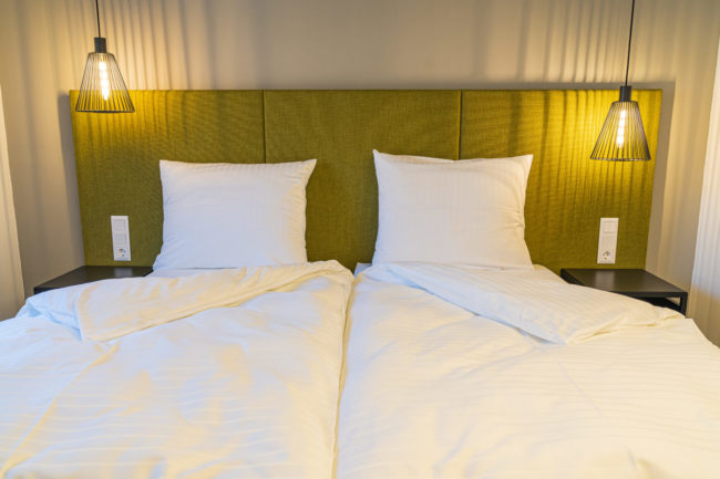 • Zwei Boxspringbetten; ein zusätzliches Einzelbett als ausklappbares Schlafsofa
